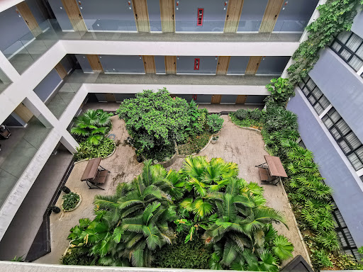 The reception area is bright and cool. The cafe to the south of the building has a nice shaded area, outdoors and a few metres from the street. The indoor courtyard on floor 3 was also superb, a zen den if you catch it early in the morning. The rooms are passable.