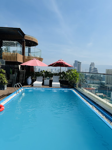The room was very clean and comfortable, and the rooftop bar was beautiful. The views of Da Nang were amazing, you can even see the beach from there. There were plenty of drink options to choose from, and the small pool at the top of the hotel was a charming bonus.