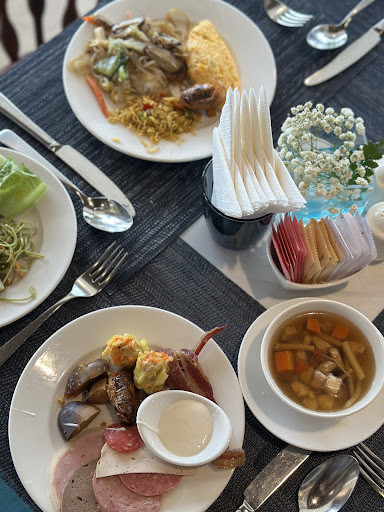 Breakfast buffet was ok. There were good choices like Banh Mi, Pho, yogurt and fruits (dragon fruit and strawberries were the star), and good egg dishes. Other several options are available but some don’t click. Ostrich Cube was so hard to chew. Meanwhile, I really liked Vietnamese coffee but they serve it cold in a regular glass pitcher on the side (what!). I asked for them to at least reheat my cup, but they refused. Waiter said I just put hot water! How come! Of course the coffee becomes diluted. The second time I asked another staff, she said the hot coffee in pot (beside the pitcher) is also Vietnamese coffee. When I tasted it, it honestly isn’t. Taster like regular instant coffee. She lied.