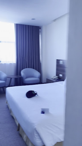 Read moreMy wife and I stayed 3 nights, arriving before 4PM by taxi($3) from DIN Airport. A welcoming receptionist copied our passports, checked the prepayment, presented our key card, then we took the elevator to the 7th floor.|Deluxe king #710 was carpeted, clean and spacious with a fully outfitted bathroom with unhandy tub shower, closet with shelf of hotpot/coffee/water, a comfortable king across a large TV(History, NHK, Planet Earth & movie in English), desk & chair with minibar, easy chairs and table, good lighting, open wifi, 4 outlets, central AC with wall control and opening window with town view.|The 6AM breakfast buffet was a great variety of Asian specialities with an egg/pho station, then a buffet of fruit juice/fresh fruits/yoghurt, cereals, meats/fish, cakes/ breads/croissants/jams & local coffee.|We ordered room service; excellent Spring rolls and Chicken corn soup.|Convenient taxis wait at the hotel entrance. I found several small grocery stores walking 300m south.|Room was cold on March 17, 18 & 19 with heat available on the morning...