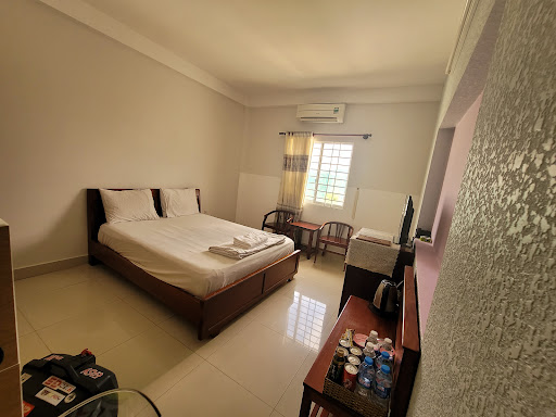 The room itself was great - comfortable bed, spacious, nice bathroom and excellent wifi. We really enjoyed staying here. The staff were very friendly however they spoke very limited English. They tried to help but unfortunately the language barrier made certain things very difficult! The laundry here was good and quick. |The biggest con for us was the location. It was quite a walk from the town/river and there didn't seem to be a lot nearby. The receptionist was unable to advise us where to go apart from the supermarket. |An annoyance was Mr Quoc - we read on other reviews to avoid him because he has scammed people for boat tours/home stays so we made sure we didn't organise anything with him. However he must have a deal with the hotel because 5 mins after we checked in he came knocking on our bedroom door giving us info about his tours. We politely declined because of the reviews we had read, but then we also bumped into him a few more times on the street and he kept asking us, and he also came to our room one more time....