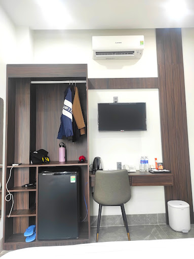 Phòng ốc: khách sạn mới xây nên mọi thứ mới mẻ lắm, sạch sẽ, đồ đạc hướng tối giản, các vật dụng dễ thương, ngăn nắp. Máy lạnh chạy êm, xài thẻ từ, máy hút mùi không ồn, tủ lạnh mới, sạch nhưng k có sẵn nước uống nha, có thang máy, chế độ nước nóng lạnh trong phòng tắm thì hơi chậm chút, tivi thì coi được youtube, có sẵn máy sấy tóc, à phòng cách âm không tốt nên ai có làm gì thì nhẹ tay nhẹ chân nè!