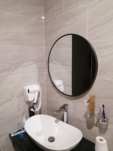 Ban công thoáng. Nhà vệ sinh sạch, rộng, có móc treo quần áo, nước nóng vòi xịt này kia hoạt động tốt, 9/10. Tủ quần áo rộng rãi, có tủ lạnh với đầy đủ nước các loại, ngăn tủ để dép. Dụng cụ sinh hoạt này kia cũng đầy đủ, nhưng thiếu nước rửa tay. TV xem mượt, mình đi nhiều nơi TV còn không bắt được. Đèn được set cũng ok. Chỗ để xe máy tiện lợi.