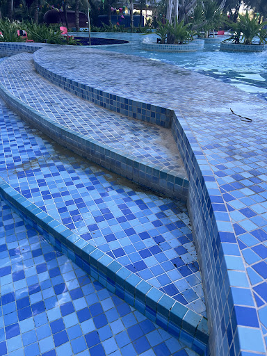 The property is huge, but it’s not well cared for. There’s trash in the bushes, under bridges along the lazy river, which only ran once during our entire stay. The buildings seem to have been constructed with very cheap materials—you’ll see rust on mirrors, handles, and other metal surfaces throughout the resort.