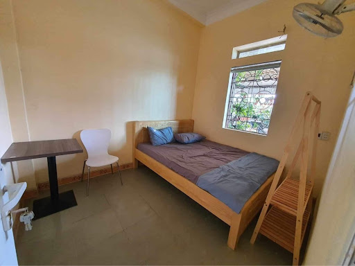Phòng 3 giường 500k/ đêm phòng rộng rãi, có ban công, tuy nhiên phòng còn thiếu đèn, không được sáng lắm. Phòng tổng thể không mới, nhưng rộng, sạch. Gối mền nệm sạch sẽ, mền nhìn tuy mỏng, nhưng đắp ấm. có bếp, bàn ghế ngồi ở bếp Nhà vệ sinh dùng chung, cùng tầng. phòng không có tivi, không tủ lạnh, không có khăn giấy. Có quạt nhưng bị kêu to, có máy lạnh, nước suối miễn phí -không thang máy. có thang bộ như hình khăn tắm và đồ vệ sinh cá nhân đầy đủ hai viên gạch trước nhà vệ sinh lầu 1 bị nhấp nhô, dễ vấp té. Vòi sen nhà tắm bị gỉ nước, nước yếu. nhà vệ sinh: thiếu khăn giấy được chị nhân viên mời ăn đặc sản Cao...
