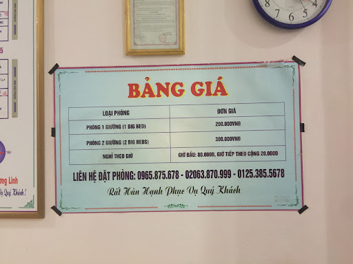 Giá: 200k/đêm cho phòng 1 giường,300k/ đêm cho phòng 2 giường, cho phép ở đến 12h trưa hôm sau.