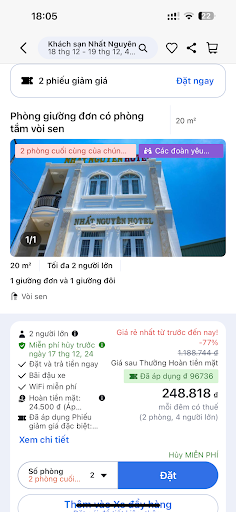 Read moreMột trải nghiệm vô cùng tệ hại. Là khách hàng thường xuyên của Agoda và là người trải nghiệm ngủ nghỉ tại khách sạn Nhất Nguyên, tại tp Cao Lãnh, Đồng Tháp, tôi xác nhận: Tất cả những bình luận, nhận xét, đánh giá tốt trên mạng về khách sạn Nhất Nguyên tại tp Cao Lãnh, Đồng Tháp là không đúng. Các thông tin về giá cả, chế độ khuyến mãi, dịch vụ, tiện ích trên Agoda không đúng với thực tế và không đúng như niêm yết tại khách sạn. Trên àgoda niêm yết 1,2tr/1 phòng, thực tế giá là niêm yết tại ks kh có phòng nào đến 400k Phòng trên agoda miêu tả chi tiết các loại phòng. Tôi đặt phòng 20m có hai giường một giường đơn và 1 giường đôi, nhưng khi đến nhận phòng lễ tân nói phòng 1 giường, nói qua nói lại 20 phút giao cho tôi hai phòng.(kèm Hình)