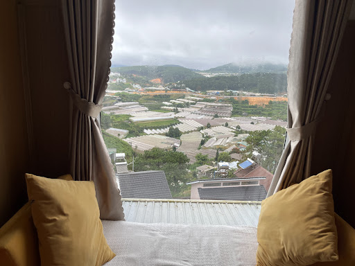 Tụi mình ở phòng view thung lũng 600k/ đêm. Lúc check in là 2 đứa nhảy cẫng lên luôn vì quá thích view nhà lồng. Khoảng cuối năm nhà lồng khu này trồng hoa sẽ bật đèn buổi tối thì view sẽ còn lung linh hơn nữa. Phòng có cửa sổ đón gió bên hông nên khá thoáng, mở cửa chính ra là ở ngay ban công có thể ngắm trọn khu thung lũng nên đối với tụi mình như vậy là mãn nguyện rồi, chỉ thiếu một cơn mưa để ngắm mây buổi sáng nữa thôii.