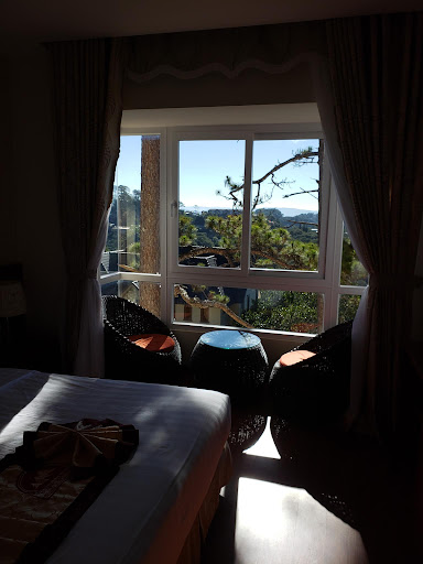 Khách sạn nằm ở đường Khởi Nghĩa Bắc Sơn, đối với tôi thì đây không quá xa trung tâm vì có thể đi bộ chừng 10p có thể đến chợ, 3-5p đến quãng trường. Vì nằm ở khu vực không phải trung tâm nên bãi đậu xe tốt, có thể đậu trên đường hoặc xuống hầm. Khách sạn mới sửa chữa cải tạo nên trang thiết bị trong và ngoài phòng ngủ đều rất tốt. Bên trong phòng sử dụng nội thất gỗ, ánh sáng vàng nên tạo cảm giác ấm cúng. Ti vi led, rộng trên 40 inches, thiết bị nấu nước, máy sáy tóc còn mới tạo cảm giác rất thích khi sử dụng. Phòng vệ sinh có cửa sổ mở trực tiếp ra ngoài trời nên rất thoáng, sạch sẽ. Sử dụng phòng tắm đứng , nước chảy mạnh. Tôi trãi nghiệm phòng ngủ có view nhìn ra phía trước khách sạn, có rừng thông của Dinh Bảo Đại nên tạo cảm giác rất fresh khi nằm trên giường buổi sáng ngắm thiên nhiên. Thái độ phục vụ nhân viên tốt, receptionist luôn chăm sóc, quan tâm khi khách đi ngang sảnh. Điều này làm tôi cảm thấy rất thiện cảm vì thái độ phục vụ như vậy tạo cảm giác thân thuộc như gia đình và đầy sự tôn trọng. Quan điểm về lưu trú tại Đà Lạt đối với tôi là view, không gian, thái độ phục vụ nên đây sẽ là điểm đến cho lần tiếp theo. Hi vọng GM có thể tiếp tục giữ được chất lượng dịch...