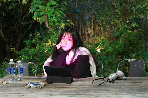 Lối vào homestay đi qua những bậc thang, dọc hai bên trồng rất nhiều hoa dễ thương. Dẫn vào nhà ngang qua tiệm cafe với mấy chiếc ghế nhỏ chạy xuống các bậc thềm, sáng nào mấy bạn ở đây cũng mở list nhạc rất chill. Nếu mà không biết đi đâu thì chắc ngồi bậc thềm uống ly cafe nóng rồi nghe nhạc cũng thấy cuộc sống ở đây thật đẹp đó.