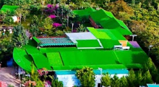Vị trí & không gian Đường đi có hơi xa trung tâm nhưng dễ tìm vì có bảng chỉ dẫn. Khuôn viên nằm trên đồi, phía dưới là hồ, buổi sáng có sương mù tạo cảm giác như cạnh mây. Không gian nhiều cây xanh, thoáng đãng, nhìn từ trên cao xuống hầu như chỉ thấy mảng xanh vì các mái dome đều được phủ cỏ nhân tạo, rất đẹp mắt.