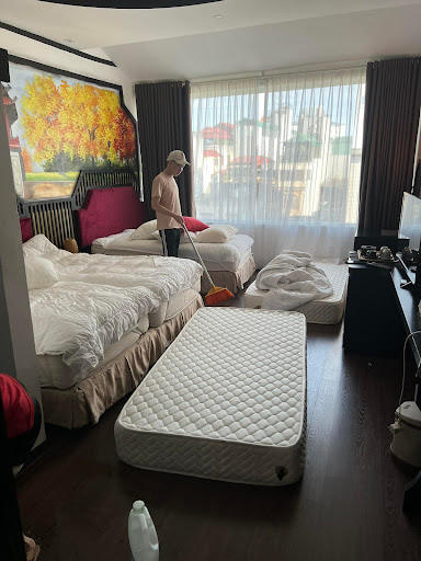 The name of the hotel is Hanoi Lullaby Hotel and Travel and the adress is this one: 16 Phố Ngõ Trạm, Phường Hàng Bông, Quận Hoàn Kiếm, Hoan Kiem, Hanoi, Vietnam. It is very hard to get to this hotel because the name on Google Apps or on the Taxi Apps (Be, Grab...) has a different address than the hotel is really located. We booked the room for 5 people via Booking. When I came there they wanted to give us the room with 3 beds and 2 mattresses on the floor, I atteched the picture to prove it. I told them if they are crazy that I will not pay for this offer. After a short negotiation, they gave us 2 rooms. One for 3 people and the second room for 2 two people and for the same price as the room for 5. The hotel is very good located, the main receptionist speaks fluently English. The rooms are nice, but with messy AC. The cleaning of the room could be better because there was a lot of dust or dirt. The service is not bad, the hotel is very smarmy and they wanted to give us many other different offers. We wanted to extend the stay, but they told us, that they are sold out, but on Booking, there were still many...