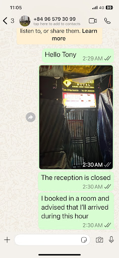 Read moreBooked here with my partner through booking.com. Contacted the hotel through the number they provide for the hotel. We sent so many messages and eventually got a reply hours later stating it was the correct number. Then we got no reply after that and couldn’t call them either. Wanted to just to let them know we would be checking in late which it says you can do at this hotel no problem. We heard nothing from them for hours and our flight was delayed. Got to the hotel at 2am and were told there was no room at the hotel and that he has been sending lots of messages to us through “agoda”. Which makes no sense since we used booking.com and had some replies through WhatsApp. We don’t even have an agoda account.