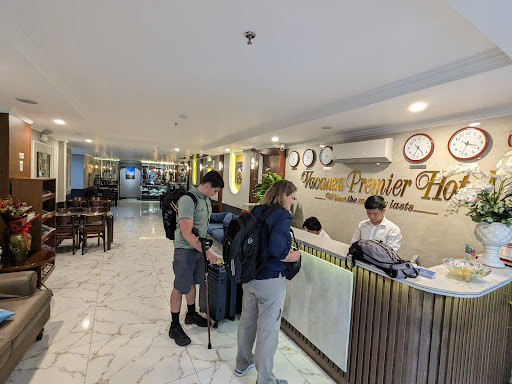 There's a dessert shop next to this hotel called Caramen-Tau Hu Tran Chau, they make homemade yogurt, caramel, and tauhu which is super good and you should try it. There's a laundry service in front of this hotel called Laundree & Coffee, and we send our clothes there. The Laundree & Coffee laundry service doesn't meet our expectations, because our clothes are partially still wet and they did not fold your clothes properly. if you stay in Vacanza Premier Hotel and send your clothes to this laundry, double-check your clothes...