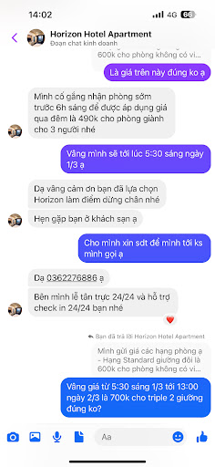 Nhân viên kĩ năng kém & rất có vấn đề: Hôm vào thì 1 nhân viên nói thu thêm 2 tiếng check-in sớm, đến hôm sau nhân viên khác ngồi tiếp tân, tôi đi ở ngoài nắng về chưa được ngồi nghỉ chưa kịp thở đã hỏi, anh ơi anh có tiền check-in sớm 3 tiếng chưa thanh toán, anh thanh toán giúp em. Tôi hỏi lại, sao hôm qua nói anh 2 tiếng, giờ đã thành 3 tiếng rồi. Xong rồi đi hỏi lại nhau mới ok 2 tiếng.
