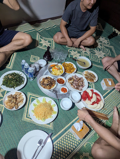 A particularly memorable part of our trip happened on October 27th, our departure day, when a sudden northeast monsoon stopped the Cai Vieng ferry for safety reasons. When we returned to the villa, Mr. Quảng was very understanding—he gave us a 50% discount on our rooms and even helped us order lunch delivered directly to the Gia Luan ferry station. We had a great meal while waiting (the Gia Luan ferry to Tuan Chau, Quang Ninh was still running since it operates within the bay, though there was quite a wait due to the number of passengers).