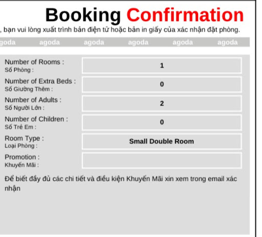Read moreMình book phòng của bên này trên Agoda và nhận được mail confirm từ agoda rùi, gần tới ngày nhận phòng của mình thì bên homestay nói hết phòng và báo mình huỷ phòng (trong khi lúc mình book qua app là vẫn còn phòng)
