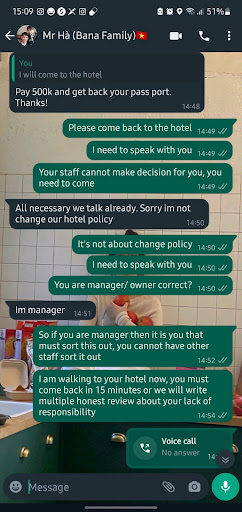 MR HA is a fake, do not believe these reviews about him being super nice and friendly. He’s super nice until he realises he can’t get money from you. Prior to already doing business with him to buy us Ba Na hill tickets. We thought he was a trustworthy business man. However, this hotel took our passport and refused to give it back unless we paid him money. He lied about us using the room when in fact it was mouldy and we asked to change rooms immediately but they said no. Mr Ha (the manager) of the hotel insisted it was hotel policy to pay the full price of one night when we had never stayed in the room, we simply booked over the phone then went to the room before immediately telling the host our room was mouldy and we wanted to change rooms. We understand the room was technically “clean”, ie: clean sheets, clean floor and bathroom. But the actual walls of the room and the smell was not safe. The room was left unscathed and we made sure to tell the host and not touch anything in the room out of respect for the fact we were not going to stay in the room, we were in the building for less than 30 minutes total. Mr ha insisted we cancelled last minute and to pay the full price of one night when it was in fact due to the room being completely not up to par and I was worried for our health due to the mould.