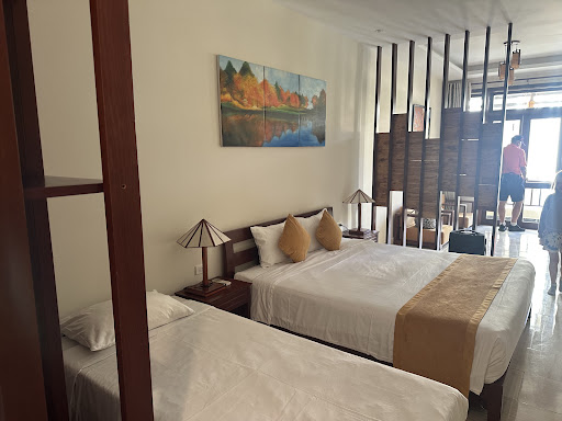Really lovely welcome from the receptionist from the moment we walked in. All the staff worked very hard to make our stay a special one. We were able to check in early, which was super nice. The staff gave great tips about Hoi An, provided a helpful map, booked our tickets for the Memories show at a discounted price (HIGHLY recommend Memory Land!), cooked our omelets made to order at breakfast, and the woman at the coffee station at breakfast was genuinely interested in asking if our room was ok and we were happy with everything. Breakfast included coffee, tea, and juices, egg/omelet station, toasts and jams, fruit, bacon/sausage, and a variety of vegetables and soup (pumpkin one day and potato the next). The lush greenery and the lanterns around the pool made for such a lovely, relaxing environment and my pictures do not do it justice. The hotel location is great, as it’s only 10-15 to the Old Town and Japanese bridge. There’s a great coffee shop right across the street (Tron Hoi An). The coconut coffee was fantastic.