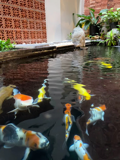 The atmosphere was very cozy: a large buffet breakfast, a swimming pool that looked especially beautiful at night with the lights on, a modest but tastefully designed gym, a wonderful pond with real colorful koi fish in the lobby, a comfortable room, and a breathtaking view from the window. The room had complimentary water and tea, as well as a minibar with very delicious dried mango (for an additional charge). Also, there was an excellent hair dryer and hair conditioner provided. And at breakfast, I tried the most delicious muffin of my life. I definitely recommend it to everyone!