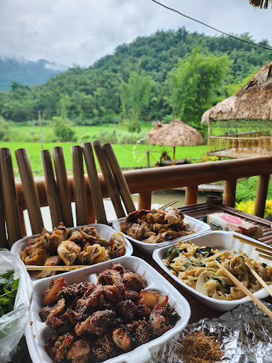 Read moreNhà sàn sạch sẽ, rộng rãi. Đoàn mình đi phượt nên thoải mái di chuyển các địa điểm xung quanh. Phòng giá hợp lý, ở dorm chung 1 phòng rộng rãi và rất nhiều đệm. Nhưng đi mùa hè thì nên trao đổi rõ ràng về giá phòng có điều hòa và phòng k có điều hòa nhé. Homestay có dịch vụ ăn uống luôn. Ở đây có em chó màu trắng và em chó màu nâu nhà bên cạnh rất thân thiện. Xung quanh đều có bán đồ ăn (cơm lam, xôi, vịt nướng, gà nướng,...) nên thoải mái trải nghiệm ăn uống. Cách homestay khoảng 1km thì có bể bơi nhỏ và khu đất trống rộng để tổ chức teambuilding, mn có thể đi bộ ra khu đó tắm hoặc uống nc các thứ. Mình đi vào mùa lúa nên cảm giác rất yên bình. Đi bộ đến chỗ có bể bơi thì sẽ đi qua 1 cánh đồng lúa, cảm giác cực phê, mùi...