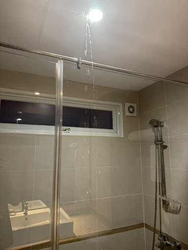 A huge amount of water was gushing out from between the lights attached to the bathroom ceiling. When I heard the sound, I realized that the shower water was leaking from the upstairs. I was so disgusted by the water, but I was so shocked and feared for my life that I could get electrocuted by the water flowing between the electrical appliances. I was so shocked that I explained the situation to the receptionist over the phone. Finally they apologized and said they would call an engineer. An engineer came to the room, looked at the situation, and suddenly said he would change the room. I couldn't bear these situations any longer.