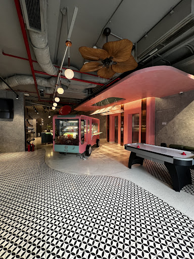 First, the pros: Rooms are overall nice, and my favorite part of the hotel. Bed is more comfortable than average and the design aesthetic is great. I like the bathroom design (although the door to get into the toilet room is a little cramped). I didn't eat there but the drinks at the bar are amazing -- I'm not a cocktail guy and I still loved it. They give you a few free drink tickets. Location is pretty good. There's a cool neighborhood if you go walk away from the main road through the backstreets with lots of small restaurants/street vendors and cafes. There's a "coworking space." Shared kitchen area in the lobby.