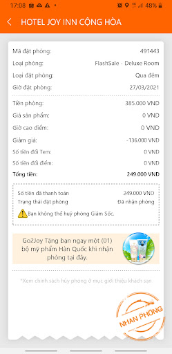 Cách khách sạn huỷ phòng cũng khá lằng nhằng. Mình đặt 2 đêm qua booking.com với giá 446k. Bạn mình check-in lúc 13h, đến 22h30 cùng ngày, mình đến ks và sau khi thấy tình trạng phòng như vậy, mình đã báo lễ tân huỷ phòng dùm mình. Ban đầu phía lễ tân báo phải chịu phí 270k, mình đồng ý và đã chuyển khoản. Nhưng sau đó họ lại bảo mình phải chịu toàn bộ phí 2 đêm là 446k vì mình đặt qua booking.com và phía ks k thể hỗ trợ huỷ phòng 1 đêm cho mình được =))) [KS muốn kinh doanh qua bên thứ 3 nhưng không tìm hiểu rõ các chính sách, cứ bảo vấn đề này bên booking.com nên ks cũng không biết phải xử lý thế nào, khá thiếu trách nhiệm]. Do mình cũng lần đầu đặt trên booking.com nên cũng không rành lắm. Sau khi mò một hồi thì mình cũng huỷ được phòng trên app booking và phía app báo mình chỉ phải chịu 205k phí huỷ phòng. Vì đã chuyển 270k, lễ tân nói sẽ ktra lại và xin stk để hoàn phần chênh lệch nếu có. Dù mình không cần nhận lại tiền, nhưng mình không đánh giá cao cách làm việc của ks. Cứ kiểu lấy tiền của khách trước rồi tính sau. Mình đặt là KS JOY INN 419 Cộng Hoà. Đặt đêm 28...
