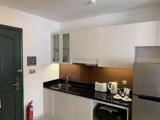 Comes with amenities like hairdryer, in-room safe, good iron and ironing board, an adequately equipped kitchenette with hood. Dish sponge and detergent can be requested and delivered to the room. If there is a choke, maintenance is very prompt too.