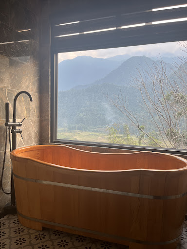 Facilities are simple, had zero issues with the hot water and bath, it was excellent. warmest! it just took 5 minutes which the staff mentioned upon check in. Interiors were artfully selected, i love the stiff beds and had the most restful sleeps, naps and slow mornings there! View was stunning, it was a large pond and rice view in front of me, but the mountains were just on the left— magnificent.