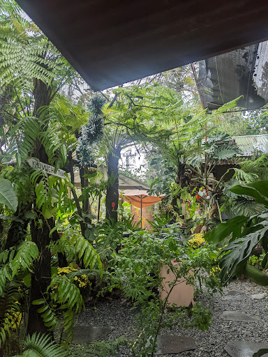 Không gian xanh bao phủ bởi cây cảnh, dây leo và cây lớn, tạo cảm giác trong lành, thư giãn, đúng tinh thần “Life hurts, nature heals”.