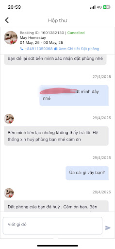 Read moreDịch vụ của Home rất ba chấm Mình đặt phòng trên Agoda, đến sát ngày nhận phòng bên khách sạn có nhắn tin xin thông tin, mình có gửi lại Chiều thấy nhắn tin vì không liên lạc được nên xin phép huỷ phòng, trong khi mình không nhận được bất kỳ cuộc gọi nào. Hôn sau mình xuống Huế roòi tự nhiên thành ko có phòng,...