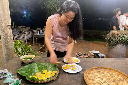 A Homely Experience at Memento Resort Every time we visit Memento Resort for a few days, we feel like we are returning home to our family. This feeling comes from the warm welcome of the young owner, Ý Thơ, her family, and the staff, all of whom we have known for many years. The resort's grounds, surrounding the nearly 100-year-old ancestral house, are beautifully maintained and serene. The garden is shaded by a variety of trees like tamarind, jackfruit, mango, and star apple. In front of the bungalows, a row of areca palms stands, while across the path, ornamental banana plants provide a cool canopy. Behind the house, tall coconut trees reach for the sky. Along the walkways, beds of ten o'clock flowers burst into bloom in the sun. The herb garden by the house provides fresh ingredients, and at the end of the garden, a swimming pool offers a refreshing escape. As soon as we check in, the children jump into the pool, play a few games of billiards, or go fishing in the pond by the kitchen. In the morning or afternoon, guests can borrow bicycles to explore the local morning market, ride through the village, or visit the nearby rice paddies. The highlight of the resort is the food. The delicious, rustic dishes, typical of the coastal region of Nha Trang and the Mekong Delta—the owner's hometown—always satisfy even the most discerning diners. The warm hospitality and sincere service of the staff make every meal feel cozy and welcoming. Mỗi khi có dịp ghé Memento Resort nghỉ vài ngày chúng tôi luôn có cảm giác đang trở về nhà với những người thân gia đình về sự tiếp đón nồng ấm của cô chủ nhỏ Ý Thơ cùng đại gia đình và đội ngũ nhân viên mà chúng tôi đã quen biết nhau từ nhiều năm trước. Khuôn viên bao quanh ngôi từ đường cổ kính gần 100 năm tuổi được gia chủ giữ gìn, tôn tạo một cách uy nghiêm là vườn cây rợp bóng mát với đủ các loại từ me, mít, xoài, vú sữa...Trước hiên nhà nghỉ là hàng cau kiểng "mướt quá xanh như ngọc", bên đối diện có hàng chuối kiểng xoè tán lá làm mát rượi cả khu nhà, sau lưng thêm hàng dừa vươn cao vút. Dọc các lối đi những luống hoa Mười giờ chỉ chờ đủ nắng là nở bừng lên, bên hè nhà trồng đủ lại rau gia vị, cuối khu vườn có chiếc hồ bơi càng làm không gian thêm mát dịu nên vừa nhận phòng là các cháu nhỏ nhảy ùm xuống hồ hoặc chơi vài ván bi da hay ngồi câu cá bên chiếc ao trước nhà bếp. Sáng hay chiều khách có thể dùng xe đạp dạo chơi xem buổi họp chợ quê sáng hay quanh làng thăm các ruộng lúa. Đặc sắc nhất nơi đây là các món ăn dân giã đặc trưng miền biển Nha Trang hay miền Tây Nam Bộ vốn dĩ là quê hương của cô chủ nhỏ rất ngon miệng luôn làm hài lòng những thực khách khó tính nhất. Khách cũng sẽ cảm thấy ấm cúng vì sự tiếp đãi ân cần cùng sự phục vụ nhiệt tình, chân chất của đội...