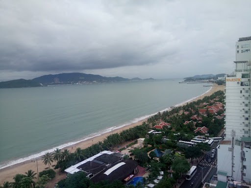 Read moreЖили в отеле в конце августа - начале сентября 2017 года, 15-й этаж, семейный номер с двумя комнатами с видом на море. Двое взрослых, двое детей. Отель подобрал турагент, настрой был именно на гостиницу в центре города. В целом всё совпало, хотя фотографии на сайтах реальности так себе соответствуют. Расположен на центральной улице, прямо через дорогу городской пляж и то, что принято называть Парком Горького - на самом деле в момент нашего пребывания там был не парк, а бассейны с лежаками и кабаком. Всё около отеля есть - ресторанчики, магазинчики, пункты обмена валюты, туристические компании. До европейского туристического квартала 15 минут идти - примерно километра полтора. Цены на фрукты и валюту - лучшие в городе, но нужно пару дней потратить, чтобы прицениться. Видимо, сказывается некоторая удалённость от европейского квартала. Есть лучше, всё же, в европейском квартале, там же покупать алкоголь - тут дороговато, но разница в цене - плюс-минус 10 тысяч донгов. Сама гостиница не на четвёрку даже, а на тройку скорее. Маленькое пространство внизу, крайне опасная и вечно мокрая крутая лестница на входе, грязные двери у лифтов. Но отзывчивый персонал, который всё понимает с полуслова. Заселили нас вместо 14.00 прямо в 8 утра, чем сильно нас спасли от мучительного валяния на палящем солнце (самолёт у нас прилетел в 4 утра). Никакой дополнительной платы не взяли. Номер чистый, но обшарпанный, хотя гостиница вроде бы новая. В ванной всё чисто, но всё везде бежит. После принятия душа на полу образуется лужа, сама душевая кабинка сляпана как попало, душ неудобный и тоже во все стороны шкворчит. Окна в номере снаружи грязные - фотографировать не очень хорошо. Бельё, полотенца, мыльно-рыльные принадлежности - всё в порядке, меняют каждый день или по требованию. Два сейфа в номере, в одном были севшие батарейки, и он каждый день запирал всё внутри, только к середине пребывания нашёлся умный охранник, который понял проблему. Была оторвана половинка шторы, и сколько мы ни просили, так ничего и не сделали. В итоге сцепляли прищепками. Наши предшественники пользовались зубочистками. Уборка на тройку - вроде всё в порядке, но песок до конца они не выметали, и я в конце смирился спать на простынях, пересыпанных песком. Некоторые смены убирались откровенно плохо, а некоторые - получше. Каждый день была бесплатная вода по количеству постояльцев, ещё по 4 бутылки за деньги видимо стояли в холодильниках, которых два. В каждой комнате по кондиционеру. Стены тонкие, слышно всё очень сильно. Коридорчик между комнатами - не разойдёшься вдвоём. Телевизора два, но мы их ни разу не включили. Самый главный бонус - вид из окна. Тут без вопросов - просто идеально, но надо бы им как-то помыть окна. На два этажа выше есть смотровая площадка, там можно было пофотографировать не через окно. Бассейн на время нашего пребывания не работал. Завтраки на тройку, но голодным не останешься. Но кухня там прямо в одном помещении со столовой и приходили в провонявшей одежде - я в середине путешествия в этой связи завтракать в отеле перестал и не очень по этому поводу страдал. Жена ела каждое утро, была довольна. Дети обходились местной лапшой. Общая оценка - 4. Почти идеальное расположение, отменный вид из окна, довольно чисто, хороший персонал. Но номера раздолбанные, места в отеле маловато и окна...