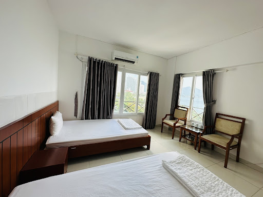 • ưu điểm: vị trí rất đẹp, băng qua đường là tới lối vào xuống bãi biển, xung quanh có nhiều quán ăn ngon, quán cf, siêu thị các thứ, tiện và đáp ứng đầy đủ nhu cầu, ngay khu trung tâm thuận tiện di chuyển đến các địa điểm ăn/chơi giá phòng tốt, cả hành lang ngoài phòng và ban công đều có view thành phố, view núi, view biển, toàn bộ ảnh/vid đính kèm đều là view phòng tầng 3, xứng đáng 100 sao 😭❤️ cách âm không tốt lắm nma khá yên tĩnh, lâu lâu có tiếng người nói chuyện với tiếng xe nma ks mặt tiền nên chịu thui có các tiện ích cơ bản: máy sấy, tủ lạnh (không có ngăn đông), giá phơi quần áo ngoài ban công, nóng lạnh… mấy chú ở bãi xe vui tính thân thiện nhiệt tình, bãi xe thì siêu rộng, thoáng, ra vào dễ • điểm kh thích lắm: phòng nhỏ, không rộng rãi để thoải mái đi lại lắm đệm cứng nằm kh êm 😭 dọn phòng qua loa cực, ga giường, gối, sàn nhà vẫn dính đầy bụi bẩn, cô dọn phòng gđ mình ở thái độ cũng kỳ kỳ mà còn dọn không sạch :)))) (vì cnay mà từ 1000 sao còn 4 sao, mong năm sau quay lại sẽ có dọn phòng dọn sạch hơn 😞)