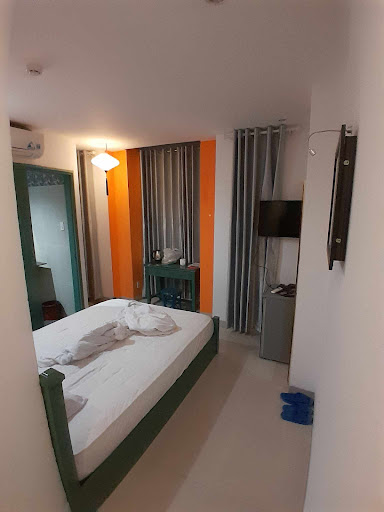 Waited for just 30 mins and they checked us in early. The cleaning staff literally just finished cleaning, because when we entered the room the floor was still a bit wet. Air-conditioning worked well, bed and pillow is comfy. Just a few very small and minute color stains on the bed. Bathroom is generally clean. Mini fridge had to be plugged in when we checked. It could have been cleaner, but it works fine, can cool your drinks. TV also works, we just had to navigate and change the language since it was set to VN language. It had youtube, hbo go, local channels, and other apps. TV position could have been better, because it is in the corner of the room. 2 windows are in the room, but one has a broken lock, and so we could not fully close it. There was an electric water kettle and 2 water bottles given. No mugs or cups though. Cabinet could have also been cleaner, felt that it was dusty and smelled. The clothes hanger bar was also broken on one side. We didn't use it.
