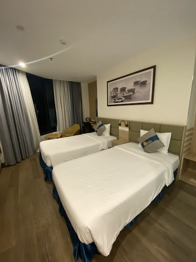 Read moreThe best hotel we have been in Nha Trang, the price it was below average compared to the rest of hotels located in the area, it was a bit distant from the city centre but not much it was basically around 20 minutes walking distance but you could either go through the beach or get distracted on the way while you get there through the main road. Around the hotel there’s plenty of restaurants and shops also, you can have either fresh juices or coffee and all types of food. The hotel is super pleasant as soon as you walk in till the pool, all the areas and hallways are clean, the reception has a beautiful decoration and atmosphere as well as the rest of the hotel, the pool area is also very well painted and makes a great vibe although when we were at the pool it was a bit windy, the gym is very small only has four machines which if there’s more than two persons it can be a bit unpleasant and the views are not the best it bnb looks like there’s an area behind the hotel totally abandoned it would be great if eventually a fun park or a kart circuit would be done there, but although the views are not the best you can enjoy the perfect sunset. There is a spa on the top of the hotel which you can have your own massage or treatment without leaving the hotel, the pool area does also have bathrooms with shower and some rest beds around the pool. The staff were very friendly and professional also the cleaning staff were coming daily to clean and arrange the room. The room it was just amazing everything was new and it was very well decorated, the details made it just all, the mirrors had touch light there’s was a mirror also and a desk with a very comfortable chair as well a small table for the views, the beds were very comfortable and on the bathroom there was hot water and a bathtub. It was a great room with sea view not so bad because you could see the beach although there was some buildings in the middle but you could still enjoy the sea view. The hotel also counts with transfer services to the airport and other services on request. We had a very pleasant stay here and if you’re searching for a hotel to stay in Nha Trang I would definitely recommend this one as everything is quality. There’s also a restaurant inside the hotel and a buffet breakfast for only 100K. If there’s something I have to mention is that we ordered an orange juice to the room and it was not freshly made juice it was from the package and that is not good at all as everywhere around the Vietnam they make the juices fresh from the fruit I think this should be improved besides that our experience it was excellent and would...