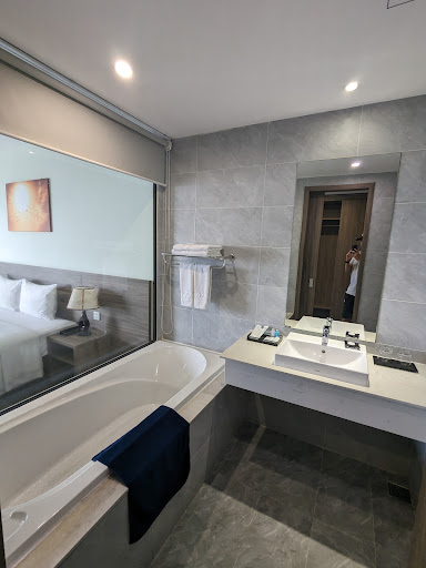 It was a great experience staying in this hotel. Value for money. Will revisit. The room was clean, tidy, equipped with all things you would need for a short stay like tivi, fridge, safe, working table and chair, sandals, bathing stuff, a bathtub in bathroom, especially an amazing sea view and city view. Small tea table is put on the balcony, sitting out there with a tea pot and enjoying the seaview, that is much more than just a good leisure time. The gym room is well equipped, next to the swimming pools, therefore has a nice and open view. The swimming pool is open space, halfy outdoor, towels are served by a staff, with some music, chairs looking towards to the sea, that's enough for an afternoon swimming. The reception area is wide, with lot of place for you to comfortably sit when waiting for the check in/out. Location is good, next to the beach, in the busiest street in Nha Trang, surrounding by several food shops. The hotel also has its own restaurant next to the hotel. The breakfast is ok, it is a buffet. Staff are friendly and helpful. What I impressed the most is the guys who take care of car parking, we parked our car outside, in the morning it was very sunny and hot, he put in our car's windshield an cover, before we left he removed the cover and also cleaned the windshield, that helped a lot. Parking for free, lots of...