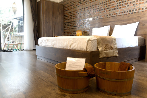 One of the highlights of this homestay is the peaceful, natural surroundings. The property sits on a small pond that’s adorned with stunning lotus flowers. There's also a small wooden bridge that crosses the pond to a serene sitting area, perfect for relaxing and unwinding after a day of exploring.