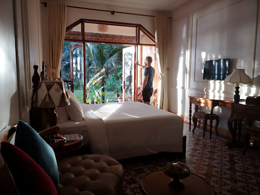 Read moreWir haben 12 Tage Badeurlaub im CocoPalmBeach Resort verbracht. In den ersten Tagen hatten wir (wie auch gebucht) eine Garten Villa. Es war sauber und wohnlich. Jedoch hatten wir dass Glück den Wassertank genau vor dem Badezimmerfenster stehen zu haben. Daher war der Ausblick extrem eingeschränkt, Tageslicht kommt nur wenig rein. In diesem Bungalow ist jedoch nach ein paar Tagen die Stromversorgung ausgefallen (sofort war Personal vor Ort um den Fehler zu suchen) und wir bekamen ein Upgrade auf eine BeachVilla in Strandnähe, obwohl die ein oder andere Gartenvilla derzeit leer stand! Wir haben uns natürlich gefreut! ||Dazu muss man sagen, dass egal in welchem Zimmer man sich befindet, man hat immer nur wenige Schritte zum Strand. Die BeachVillen sind jedoch etwas moderner und besser ausgestattet.Die Gartenvillen sind etwas zurückversetzt im Grünen. ||||Ein besonders großes Lob gilt allen Angestellten! Die Gästebetreuung ist absolut lobenswert, hier kann sich in so manch anderem, touristisch gut erschlossenem Land, eine "Scheibe abgeschnitten werden" ! Es wird sich um alles gekümmert, das Personal sind meist Einheimische oder vom Vietnamesischen Festland. ||Es gibt kaum Gastarbeiter aus anderen Ländern. Sie sind unglaublich bemüht Englisch zu sprechen und einem jeden Wunsch von den Augen abzulesen. ||||Die gesamte Anlage ist sehr sauber und jeden Tag sind mehrere Gärtner dort um den wunderschönen, tropischen Garten zu pflegen und hegen. ||||Wir fanden das Restaurant der Anlage OK. Es gibt Pommes, Sandwiches, Burger, Nudeln, Reis, Suppen usw. Jedoch ist hier noch großes Verbesserungspotenzial übrig. Zum Beispiel sind die Pommes immer etwas hart und trocken und das Fleisch vom Burger ist nie so richtig durchgewolft, sodass man oft kleine Knorpelstückchen findet. (Wir sind eben in SüdOstAsien, man kann nicht immer und überall gutes, westliches Essen verlangen)|| Die Cocktails sind allerdings absolut klasse und qualitativ sehr gut! Es ist eben ein "Beachrestaurant". Hier kann man sich mal eine Pommes holen, aber ein "hochwertiges" Gericht sollte man nicht erwarten. ||Empfehlung von uns : ein paar Minuten Fußweg den Strand entlang gelangt man zum MangoBay Resort. Die Preise sind verhältnismäßig höher als auf dem Rest der Insel, aber dass was man geboten bekommt ist absolut klasse! Es gibt 2 Restaurants direkt am Meer und man erlebt einen unvergesslichen Sonnenuntergang. ||||Das Frühstück im CocoBay ist in Ordnung und reichhaltig. Die angebotenen Speisen sind alle okay. Wurst oder Käse habe ich persönlich dort nicht gegessen. Das Obst ist immer frisch und es gibt Brot und Brötchen sowie verschiedene Marmeladen. Man kann sich auch ein Omlett mit gewünschten Zutaten machen lassen oder einfach mal Cornflakes essen. Alles in Allem OK. ||||Wo wir persönlich großes Verbesserungspotenzial sehen, ist zum Beispiel in der Abendunterhaltung. An 5 Tagen die Woche singt eine liebe philippinische Dame (zumindest zu der Zeit als wir da waren) . Wir waren persönlich nicht unglaublich angetan, da wir eher die ruhesuchende Sorte Urlauber sind, gerade Abends. Man könnte die Abendunterhaltung hier abwechslungsreicher gestalten, da sich die Songs auch jeden Abend zum Teil wiederholt haben und es war recht laut. Besonders großen Anklang hat dies unserer Meinung nach auch nicht erlebt, denn meist waren nur 3- 4 Ehepaare an den Tischen, an manchen Abenden auch niemand. ||||Ein weiterer Nachteil, wie wir finden ist, dass die Liegen am Strandabschnitt des CocoPalm auch von Standbesuchern für 8€ gemietet werden können von. Wir hatten teilweise Gruppen von Russen mit Musikbox nebenan, die überhaupt nicht zum Resort gehörten und aus dem Strand schnell einen kleinen Ballermann 6 gemacht haben. Wenn keine Liege frei war, hat man sich mit dem Handtuch auf dem restlichen Abschnitt vor den Liegen gelegt. Empfanden wir an manchen Tagen als störend. ||||Wo wir auch gleich zum nächsten "Manko" kommen. Uns hat die Beschreibung des Hotels unter anderem auch angesprochen, weil wir dachten sie läge außerhalb im Grünen, nur 15 Zimmer usw. Das klang für uns nach Ruhe und Erholung...So ganz war dies nicht der Fall.||||Die meisten Asiaten, welche auch in recht hoher Zahl auf der Insel vertreten sind, sind erfahrungsgemäß oft nicht so ruhebedürftig wie die Europäer. So lief eigentlich den ganzen Tag über in der Nachbaranlage, ein paar hundertemeter weiter, japanischer Elektropop und Karaoke und das recht laut! ||||Alles in Allem waren wir aber zufrieden! Was man auch erwähnen sollte , ist das große Müllproblem der Insel. Außerhalb der Anlage ist wirklich überall Müll. Die Anlagen selber werden immer wieder sauber gemacht, auch der Strand. Am Abend mit der Flut wirdaber auch immer wieder Müll angeschwemmt, der allerdings sofort weggeräumt wird. An einem Abend, als wir vom Restaurant zurück kamen lag eine TÜR! angespült am Strand. ||||Wir haben uns einen Roller geliehen um die Insel zu erkunden. Man sieht wirklich verhältnismäßig noch wenige Touristen auf den Straßen, sollte aber auch ein aufmerksamer, sicherer Fahrer sein und sich irgendwie etwas anpassen. Der Verkehr ist nicht ganz ungefährlich. ||||Ein Tipp an das Hotel: Unbedingt Moskitonetze über den...