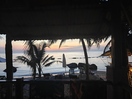 A short walk around the corner from long beach where there's plenty of beach shacks etc. and the other way, plenty of hotels with bars on the beach.