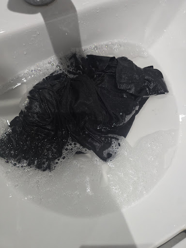 사진첨부 2번 세탁후 물로만 행궜는데 검은색 떼와 같은 물이 나옵니다. 이블의 얼룩입니다. 안내데스크에는...