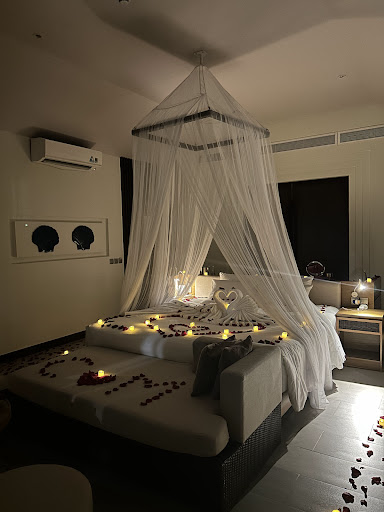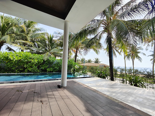 Read moreThe hotel is okay, but we expected something more, 5* are unfortunately only the prices for drinks and food. In the middle of nowhere, in an artificially created ghost town, so it feels at least. Immediately in front of the hotel there is a "food street", but with an incredible amount of empty space. The food there was expensive, the products offered didn't look very good/fresh and they all offer the same thing. We were totally disappointed by this. In the end, we rented a scooter and went in the evening to the previous "hood" to eat delicious. Food in the hotel: BBQ buffet for VND 650,000, - p. Pers., so much we have not paid in really good (even the more expensive) restaurants for both of us and (many) drinks, cheeky. The drinks at the beach bar were also very expensive. Breakfast was good the first time, a huge selection of dishes, which also all looked neat and what we ate was tasty. Service tried hard, but no service for coffee, for example, you had to get yourself at the coffee machine, so here too no 5*. Breakfast ambience is okay, a bit canteen-like, but is also a large hotel, but it was not crowded. That should change the following day... A huge group, obviously from a company from Malaysia, all with appropriate shirts, arrived. Otherwise, there were a lot of Asians in the hotel anyway. For three days the breakfast was borderline, everything full of people, so loud that we were forced to sit outside and had to shout at each other while choosing food, a special experience, never experienced before. The complex itself is finely landscaped and is maintained daily. Everything nice and green and small pools with water lilies, which looks nice. The beach is endlessly long and less frequented, you can make super walks and watch the fishermen. The sea slopes very shallow and the water quality was not as good as thought. This was surprisingly closer to Duong Dong significantly better, I expected exactly the other way around. About the room: The highest and in comparison very expensive room category "Beachfront Poolvilla" is in principle nice and as the name suggests, equipped with a beautiful and large pool including sea view. Good space, large bathroom and really good water pressure. Unfortunately, it must be said that everything seems but a bit old, everywhere is some chipped or damaged, one of the taps also had better times (completely loose) and the actually beautiful sliding doors to the bathroom are hooky, stiff and squeaky, that's really stupid. On the terrace are two sunbeds, they (still) serve their purpose, but are unfortunately rusty and no longer look nice, even here you could bring some innovations purely. The air conditioning works, but attached to the side and directly on the bed (2x2m, comfortable) directed, you have to like, but could be mitigated by settings something. We also found the meanwhile created road between resort / villa and beach very unattractive, this looks on all (official) pictures even different / more beautiful. Clouds the beautiful view immensely, also regular scooter traffic and now to the worst: The villa is so poorly soundproofed, from outside you hear everything, really everything. You have the feeling that every scooter drives past the bed and even worse are the fishing boats, especially at night, which rattled us daily from sleep. I can honestly hardly imagine that this can only be due to missing seals or existing gaps, rather the glass front seems to be enormously permeable. Conclusion: We had chosen the hotel as part of our honeymoon and actually because of the said pool villa, so a slight disappointment prevails for us. In retrospect, we probably would not have booked the hotel and would have stayed somewhere else longer. The very high surcharge for the pool villa on the beach, compared to the other room categories, especially without a pool, you have to think about, we would not stay here again. As mentioned at the beginning, it was all kind of okay, but unfortunately not more and we lacked a little something special, we felt more comfortable in...