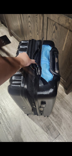 I looked at the photo... At where his finger was pointing - a huge reflection on the luggage. I told him I don't see any crack, and that it is a reflection from the light. The blurred image shows the front of the luggage where you would never be able to see the crack - crack is on the back of the luggage. He insisted it's a crack no matter what logic I attempted to explained, even showing images of the crack. The gaslight was beyond believe, you think I wouldn't know that my luggage was cracked so badly?! With the fabric exposed? You can't even pull the luggage cause the handle is flapping around.