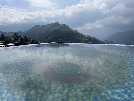This hotel is advertised on booking.com as 200m from the centre of Sapa. ||It most certainly is not, it is 800m but down a very steep hill. The altitude meter on my phone had Sapa as 100 m less than the hotel. The walk if you’re game is fraught with danger as there are limited footpaths, so you’re dodging cars or motorcycles.||The out door swimming pool was closed as was the bar and restaurant and there aren’t any shops or restaurants close by.||The breakfast was the most pathetic offering I’ve ever come across - a bit of salad, bread, those horrible little sausages and a bit of watermelon.||The hotel is clean and looks newly decorated. The rooms are small but adequate. You will spend a lot of money on cabs.||I can’t recommend this hotel for the...