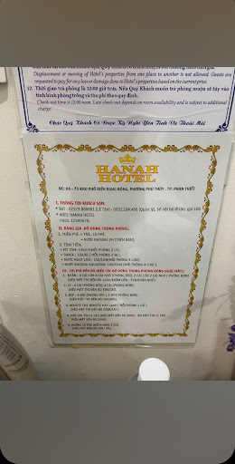 Review sơ chuyến đi PT 3n2d của mình tại Hanah !! Đầu tiên mình có kham khảo trên các app booking và lựa chọn tại đây . Tuy nhiên do trên app nên giá nhảy liên tục khá là cao nên có thể mọi người sẽ bỏ qua và chọn các điểm ở khác. Mình có nhắn tin trực tiếp qua fanpage của hotel và giá chỉ có 400k / đêm cho phòng đơn 2 người ( mức giá khá tốt cho vị trí trung tâm và gần ngay các nhà xe SG, cũng như là bãi biển ) = Mình khuyên mọi người nên book trực tiếp qua Hotel để được giá tốt nhất nhé Sẽ có 2 loại phòng là phòng đơn và phòng đôi Phòng đơn sẽ có 2 kiểu phòng : 1 loại là sẽ có ghế tình yêu ( các phòng này chỉ nằm ở tầng 1 ) phù hợp cho các cặp đôi yêu nhau hâm nóng tình cảm tại Phan Thiết 1 loại là không có ghế ( phòng sẽ nằm ở các tầng cao hơn ) phù hợp bạn nào thích ngắm view trong khuôn viên ☆ Ưu điểm : Giá phòng ổn Vị trí ngay trung tâm, cách biển đồi dương tầm 700m , cách nhà xe tâm hạnh, Hạnh Cf tầm 500m ( do nằm trong khu đô thị biển nên kế bên là công viên hòa bình, các quán xá, ) Chủ và lễ tân vui tính ở qua sáng hôm sau ra ngoài đi ăn rồi về thì phòng đã được dọn sạch ngăn nấp và thơm mùi tinh dầu xả ( điểm cộng ) mình khá thích điều này ks tạo điều kiện giữ vali sau khi checkout máy lạnh sâu tv có YouTube, Netflix có máy sấy, có sẵn dầu gội và sữa tắm ☆ Nhược điểm: phòng diện tích hơi nhỏ Cách âm không tốt Sáng hôm cuối mình ở thì cúp điện tuy nhiên ks có máy nổ ( +1 ) mình ở tầng 1 thì nghe hẵn cả mùi dầu của máy nổ (-1 ) Nên làm thêm mái che xe máy cho khách (1 hôm thì xe để ngoài 1 hôm thì xe đc...