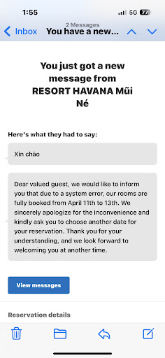 Khách sạn SIÊU TỆ, máy lạnh cả đêm không mát, đã bảo khách sạn, bà chủ nói không phải việc của bả, khách tự hỏi nhân viên, nhắn tin zalo báo máy lạnh hỏng, nhân viên trả lời do nhà mình ở 6 người trong khi chỉ ở 4 người 1 phòng. Uả dù cho có ở đông thì liên quan gì đến chuyện máy lạnh không mát?? Update: Đã có nhân viên đem cho nhà mình thêm 1 quạt mà mùa nóng ko có máy lạnh 4 người ngủ quạt, khách sạn mang tên resort mà vui ghê :))) Hồ bơi bẩn, e mình tắm xong bị ngứa. Toilet dơ, nhận phòng nhân viên mới chuẩn bị đem khăn, sữa tắm, dép lên phát cho khách. Chăn màu trắng còn có vết dơ đã cũ màu cam như 🩸nữa Có đồ ăn sáng nhưng tới 8:00 mới bắt đầu có cho khách sử dụng. Bên dưới nội quy ghi rõ là 12am nhưng đi chơi về ksan đòi trả lúc 10am và đòi thêm phụ phí, tuy nhiên nội quy đã ghi rất rõ nên không thu thêm. Khách complain thì đổ lỗi cho các nhân viên liên quan. Khách sạn không thân thiện, giá thuê đắt và không xứng đáng 1 chút nào.