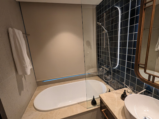 The rooms are nice enough, but with a couple of quirks. The worst feature is the inadequate glass wall in the shower that only extends about 2 ft, so inevitably everything on the floor becomes soaked. Hard to understand why it was designed that way. There are also no hooks or bars for hanging a wet towel except in the shower itself, so we ended up draping them over chairs.