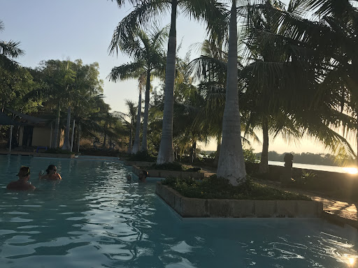 We live in Vietnam and have seen a lot of crazy places so I can say this with confidence — our stay here was plain weird. ||We arrived early afternoon on a Saturday -- taking a 600K VND Grab car from the Greenlines Ferry terminal in Vung Tau. On the surface, the place looks great. The pool is beautiful, the beach is long and deserted, the buildings seem in good repair.||But there was no one staying there. After a couple of hours it began to feel spooky.||We had booked rooms in the wooden houses overlooking the river but got upgraded to beach front villas at no extra cost. There was no explanation for the move although other friends later told us that they were moved to the beach because the less expensive rooms near the river had a rat problem. We saw no rats during our stay but we did not see the wooden houses either.||There was an extensive lunch menu although it became clear that only a few things were on offer. What we had was good value. Three of us ordered simple plates of stir fried beef, bean sauce pork etc and were stuffed at the end of the meal. The vegetables were crisp, fresh and delicious. Beer was available but there was no wine.||We had the pool to ourselves, of course. It's quite beautiful but a bit too shallow for serious swimming. Being early May, the water was luke warm -- as was the sea which we tried a bit later.||My wife and daughter thought the beach was littered in garbage but I think most of it had washed ashore. There were fishermen working the beach through the day but few other people around to actively litter the beach.||Compared to similarly priced beach resorts in Mui Ne and Phu Quoc, River Ray Estates Resort had few beach facilities. There were no lounge chairs. In fact the path from our beach house to the beach led straight to a three foot drop instead of to the stairs that were several meters away. The staff was friendly but were there for laundry and house keeping -- no beach maintenance. The cook had to be called in from her home when we wanted dinner because we were the only diners.||When we went for dinner, the outside dining room was swarming with mosquitoes so the staff offered to bring our food to our room -- we had a baby with us and were happy to shelter inside. Oddly though, there were no mosquito nets in the bedrooms which is quite rare in my experience.||Our free breakfast was NOT the continental promised on the website. The young waitress told us Sunday morning that they only had eggs, bread and coffee. No apology or explanation offered -- that was just the way it was.||The Medina villas were outdated as noted by other reviewers. The kitchens had no cutlery, cookware or dishes. But the fridges worked fine. The furniture was rudimentary but comfortable enough. There was a small dining table plus a sofa and coffee table in each suite. One bedroom had a Thai-style hard mattress while the other was soft and comfy. The AC worked great. The bathrooms were functional but 1960s ugly and stained.||At one point an older German guest with a dog walked by us on his way to the river walk and explained that there were no other guests because the units were all rented out to staffers working at the new casino down the road. But in our 21 hours here, we saw no sign of anyone -- no scooters, no people, no voices.||Maybe the new casino and other mega resorts in the area have killed off business at the River Ray and its neighbours. Too bad because it is a great setting. For now though, I recommend it for seasoned Viet travellers and I certainly wouldn't pay more than $50US a night. Expect to get upgraded to a much more expensive room near the beach. (If we had paid over $100 a night per room we would have been pretty unhappy.)||I found the stay amusing and enjoyed the peace and quiet. We had heavy rain in the evening and in the morning so didn't get a chance to really explore the beach or the river walk. Great view of the lightning storm over the sea though. My daughter (mother with baby) was visiting Vietnam for the first time and found the whole experience unsettling.||If you go, bring your own snacks and beverages and a sense of humour. I hope the owners find a way to get the business thriving again because it could be a...
