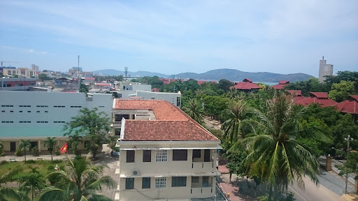 Located about a 200 meter walk from the southern end of Quy Nhon Beach, this is a rather new 8 story building. I had a room on the 7th floor with balcony and sea view. One gets a tiny glimpse of the ocean but then that is what sea-view means ;-)||||The room is spacious, modern (rain forest shower), clean, and equipped with air conditioning, fridge, water kettle, and mini bar selection.||||Easy motorbike parking on the ground floor.||||The beds and bedding are out of this world. I slept 12 hours last night. The hot water was boiling hot (careful) last night and the towels were heavenly fluffy.||||Definitely a come-back-to place ;-) If this hotel had been located right at the beach it would have gotten 5/5 points, something I award...